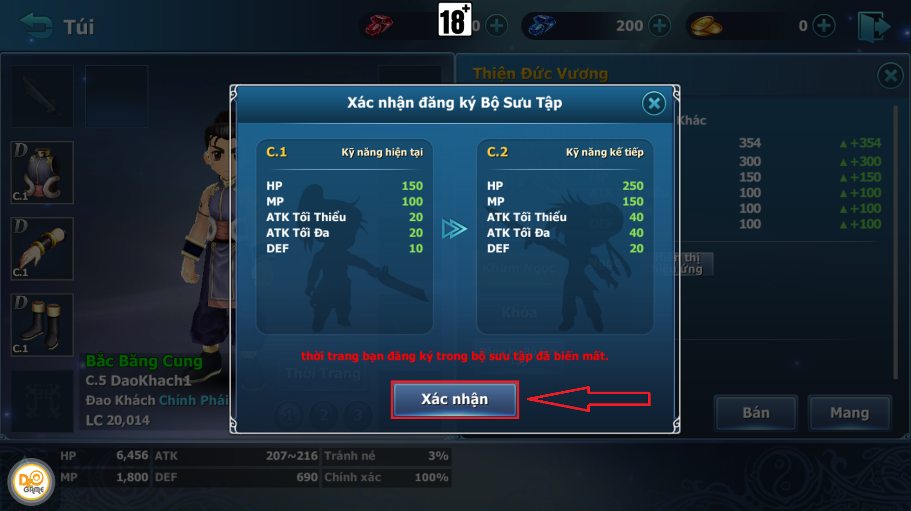 - Cộng chỉ số và lực chiến vĩnh viễn khi được kích hoạt.