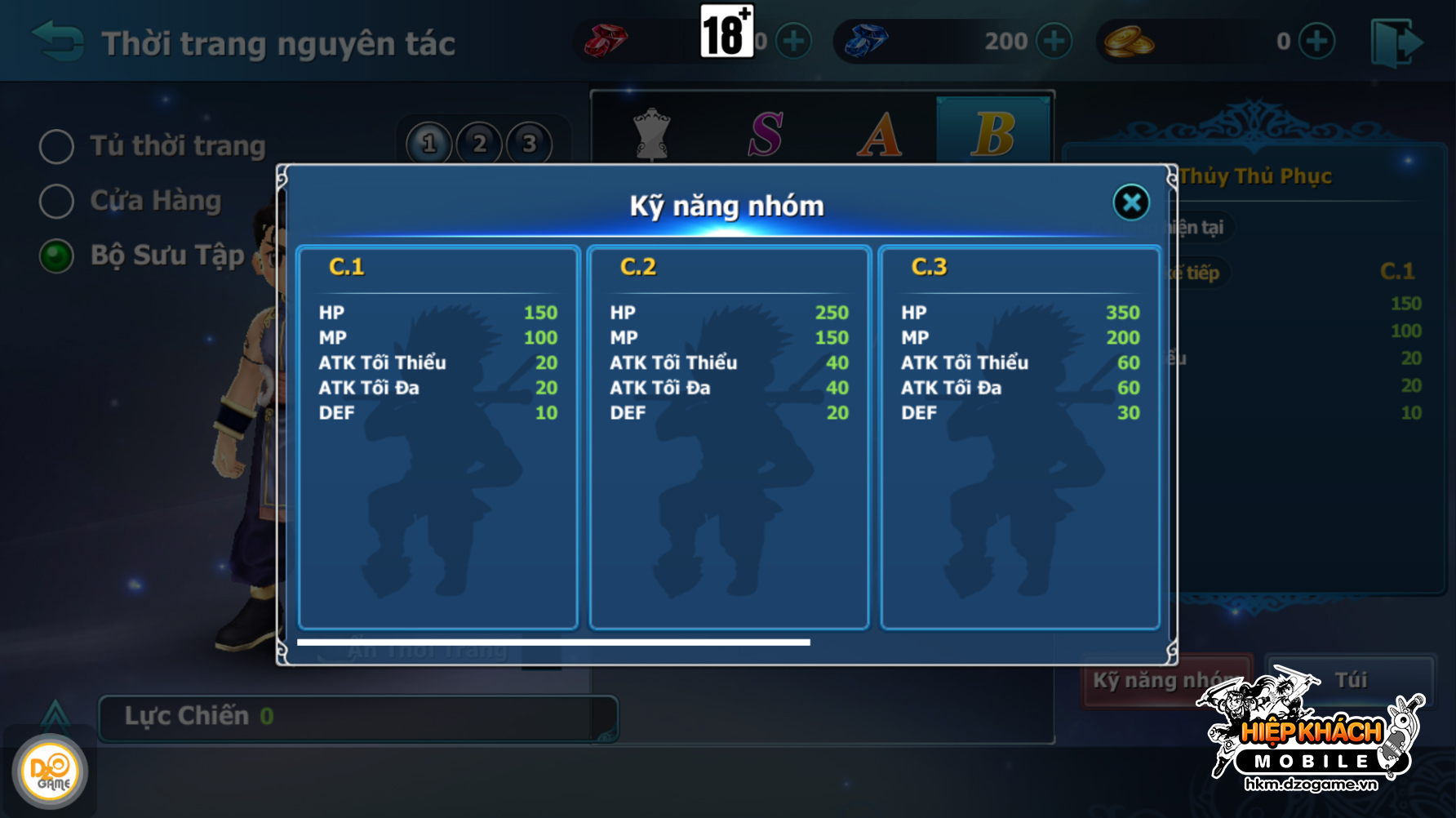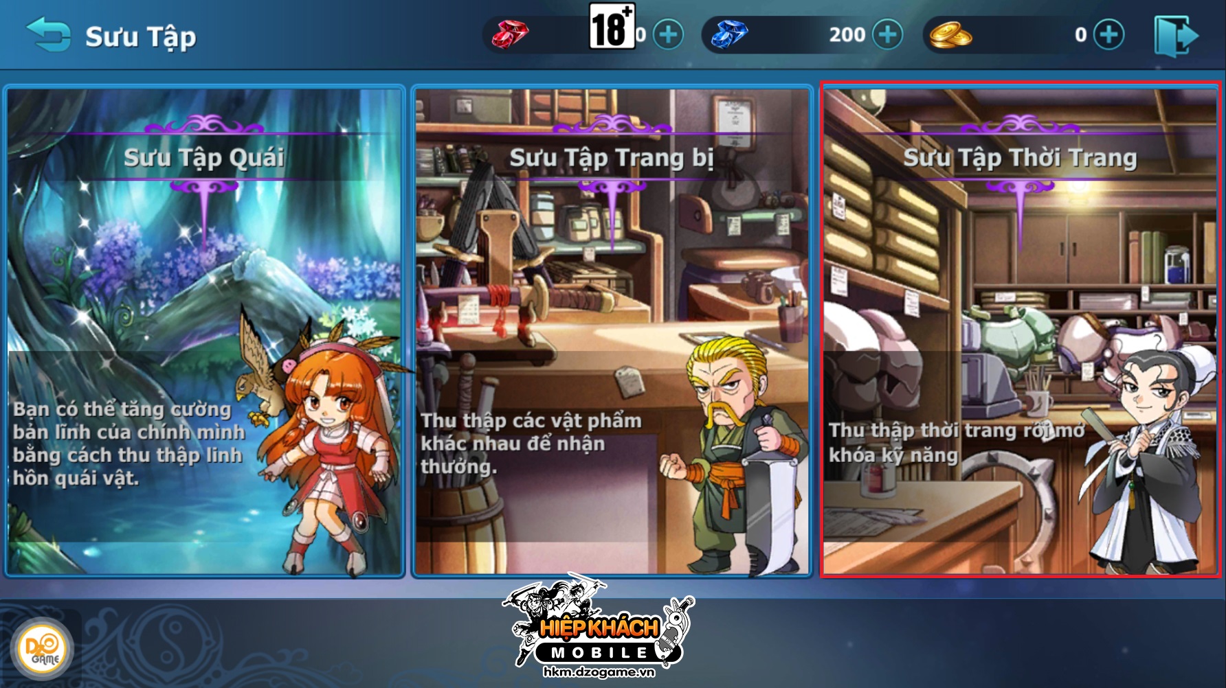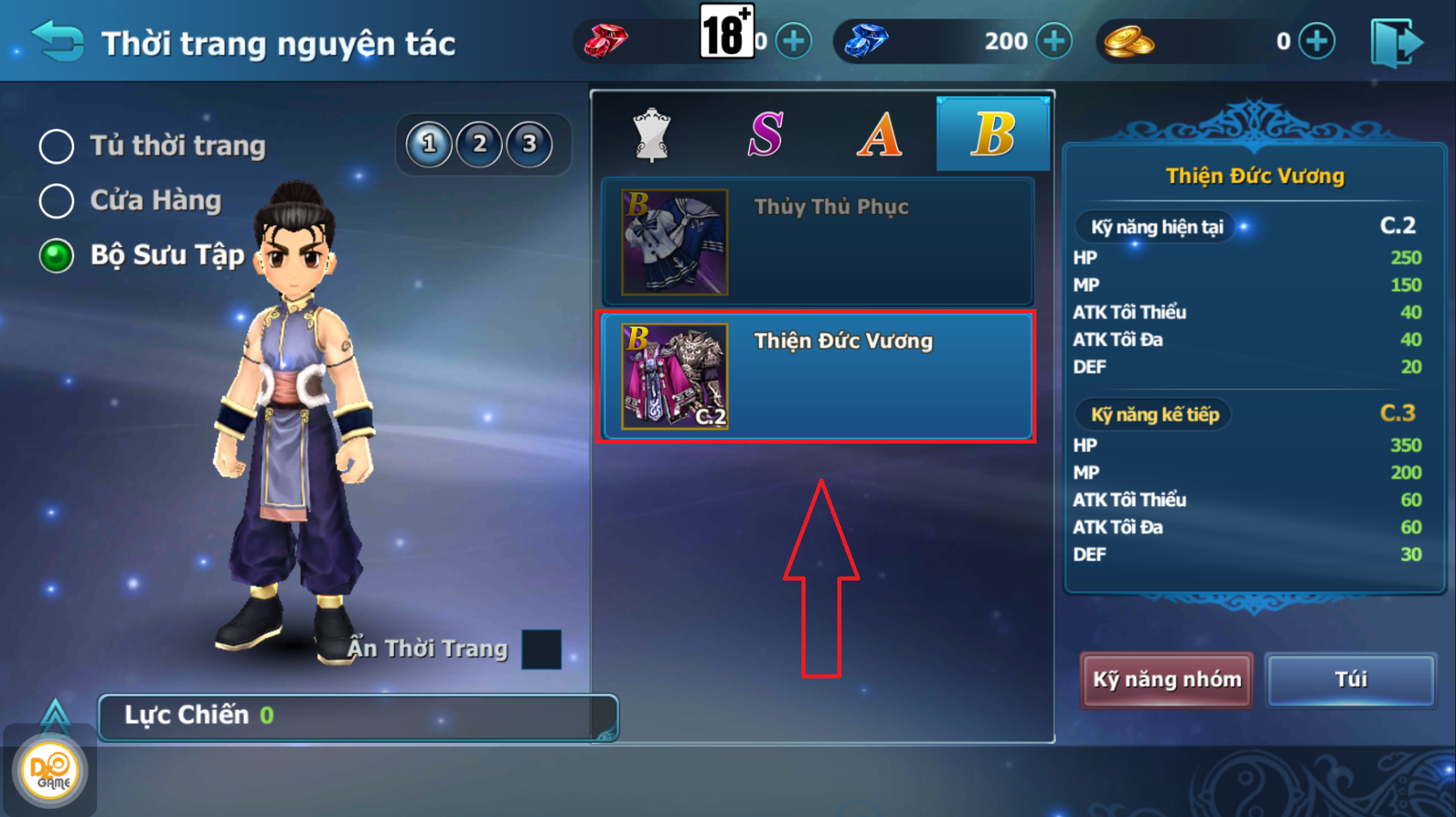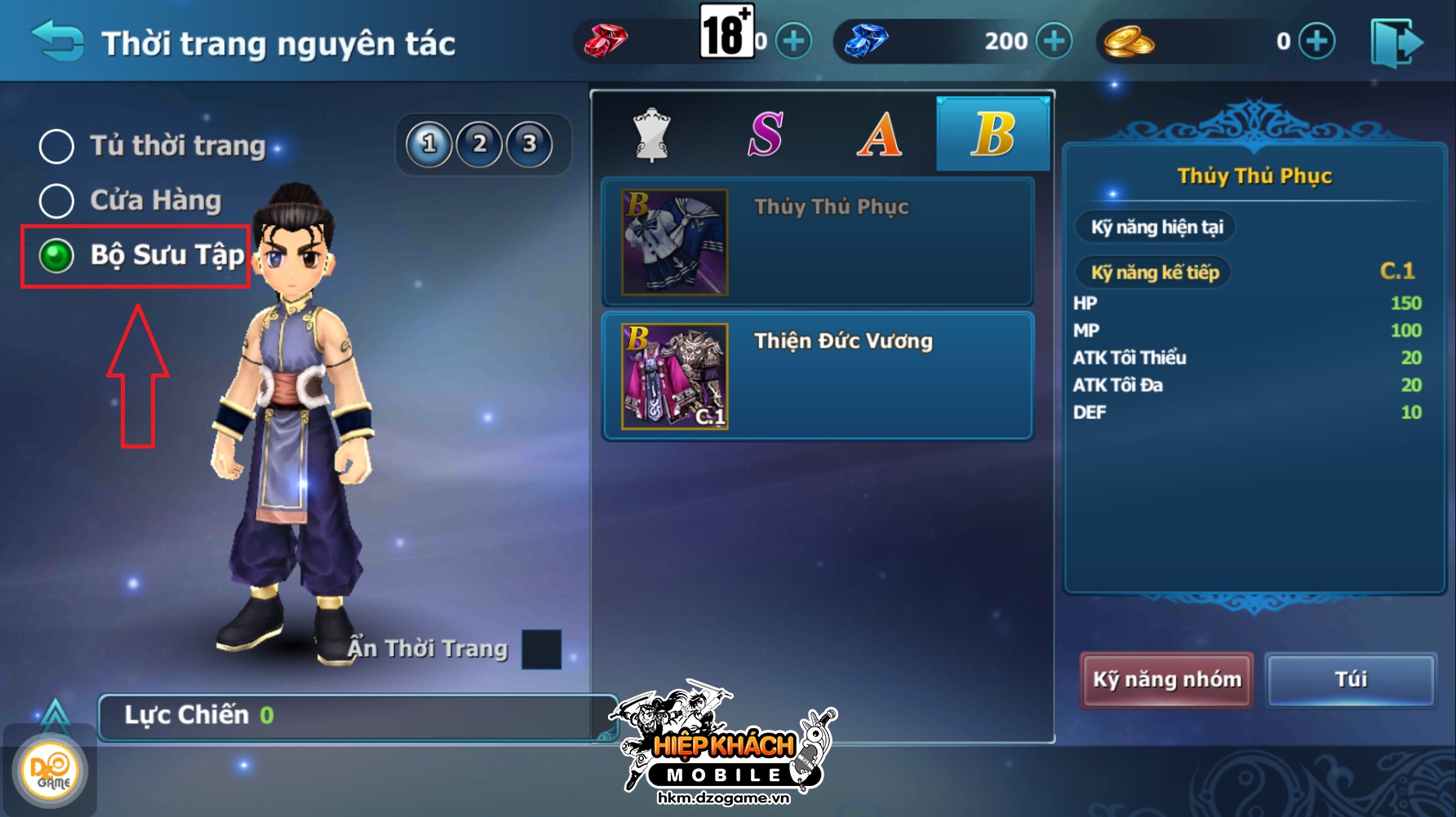 - Bước 1: Chọn bộ sưu tập thời trang mà Hiệp Khách muốn nâng cấp.