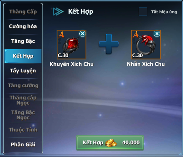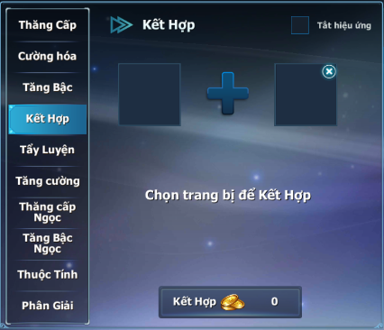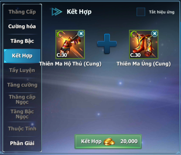 - Đối với Phòng Cụ và Trang Sức thì chỉ cần cùng cấp bậc và đạt cấp độ 30 là có thể tiến hành Kết Hợp.