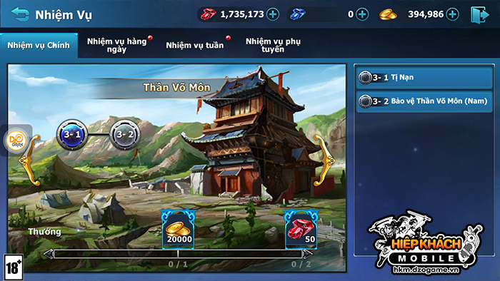 - Là loại nhiệm vụ đi theo cốt truyện chính trong Hiệp Khách Mobile.