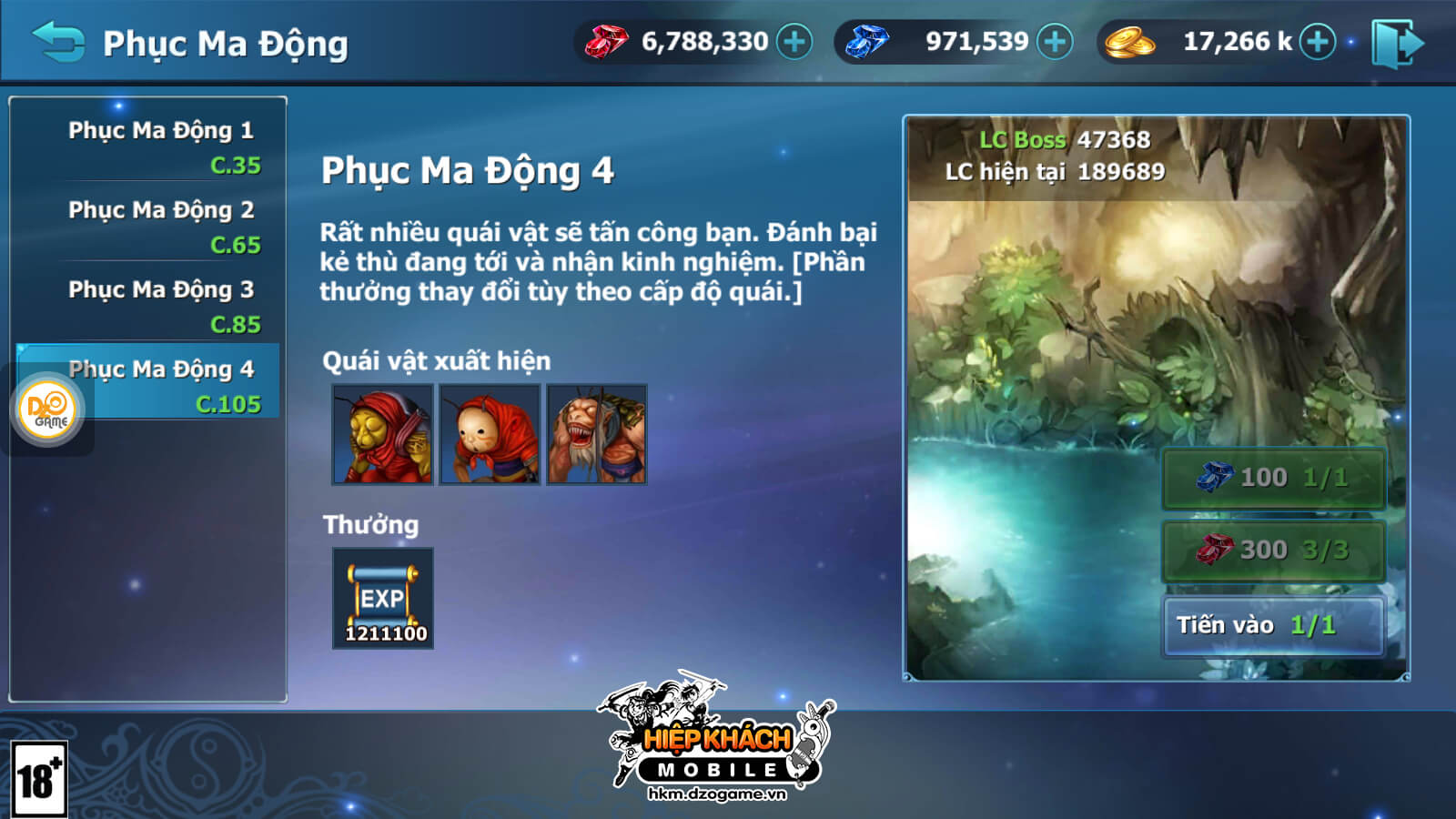 VD: Phục Ma Động 4 Lực Chiến trung bình của Boss là 47,368 thì Đại Hiệp cần có Lực Chiến cao hơn số đó để có thể vượt ải.