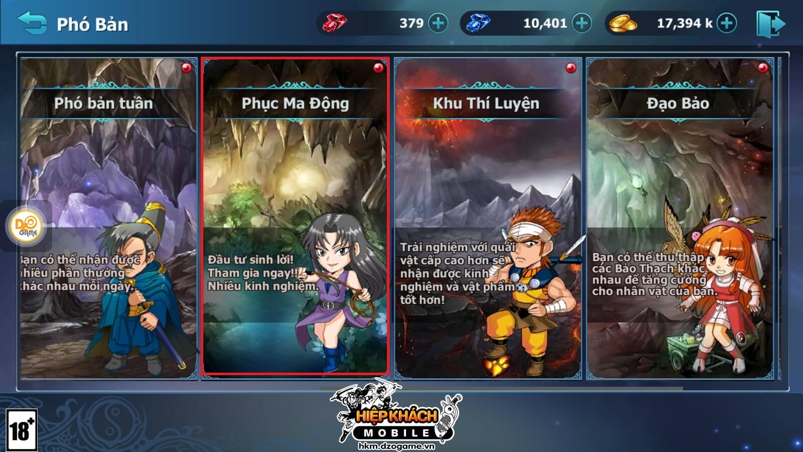 - Là phó bản cung cấp một lượng lớn điểm EXP cho các Hiệp Khách trong Hiệp Khách Mobile (nên tham gia mỗi ngày nếu có thể).