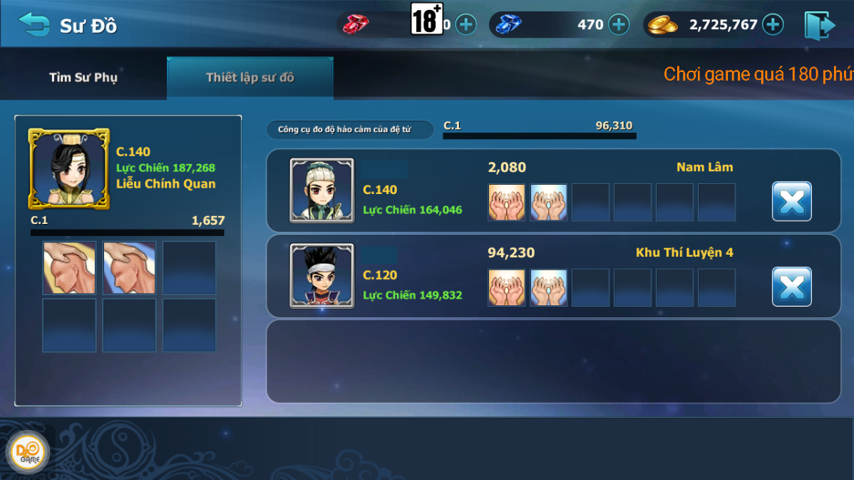 - Độ Hảo Cảm của Sư Đồ có thể tăng lên thông qua quá trình đánh quái.