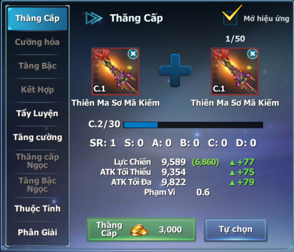 Cách 2: Sử dụng Đá Thăng Cấp để thăng cấp trang bị. Đá Thăng Cấp có thể rơi ra từ các loại quái khác nhau ở các bản đồ khác nhau, được chia ra thành 3 loại như sau: