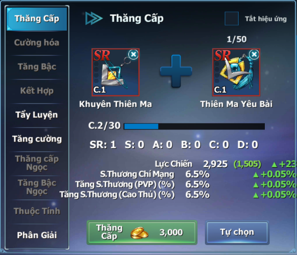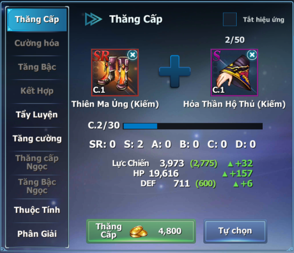 Cách 1: sử dụng những trang bị không cần thiết để làm nguyên liệu thăng cấp