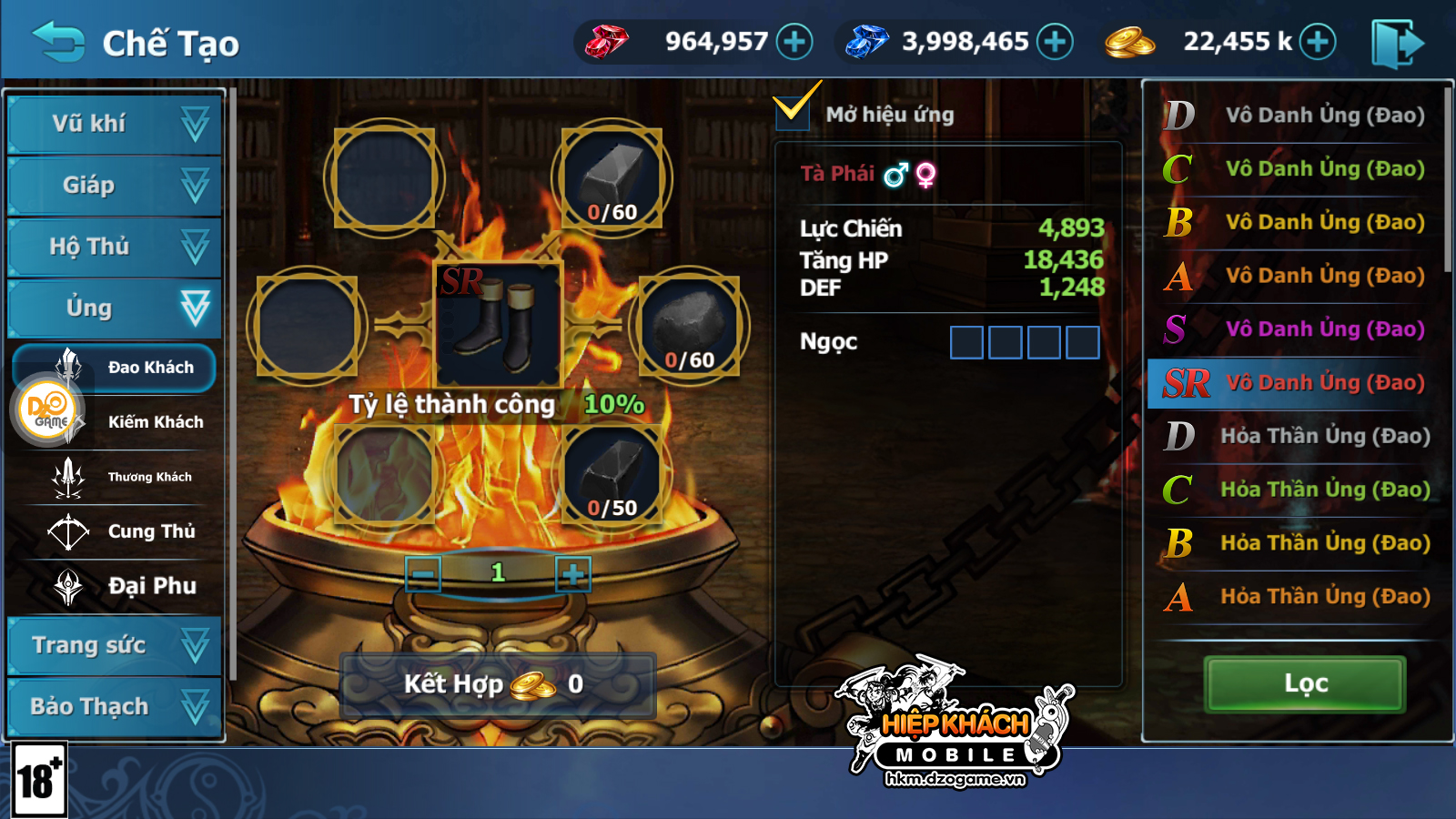 + Tỷ lệ ghép thành công vũ khí cấp D: 100%